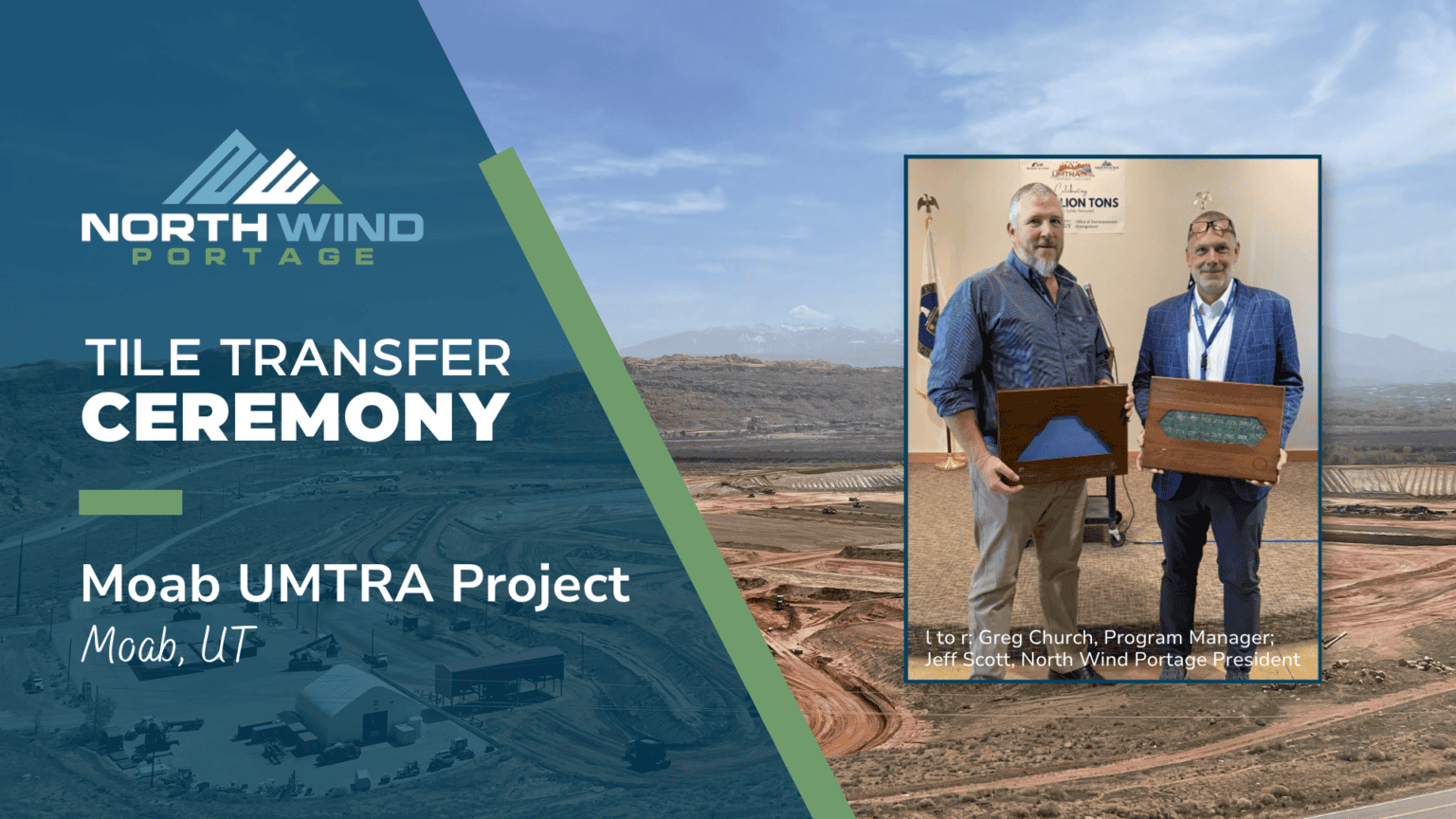 On Thursday, April 9, 2026, the North Wind Portage Moab UMTRA Project celebrated its milestone of permanently removing 16 million tons of residual radioactive material from the Moab site. Members of the project team, senior Department of Energy (DOE) officials, other project stakeholders, and the local community attended the ceremony.