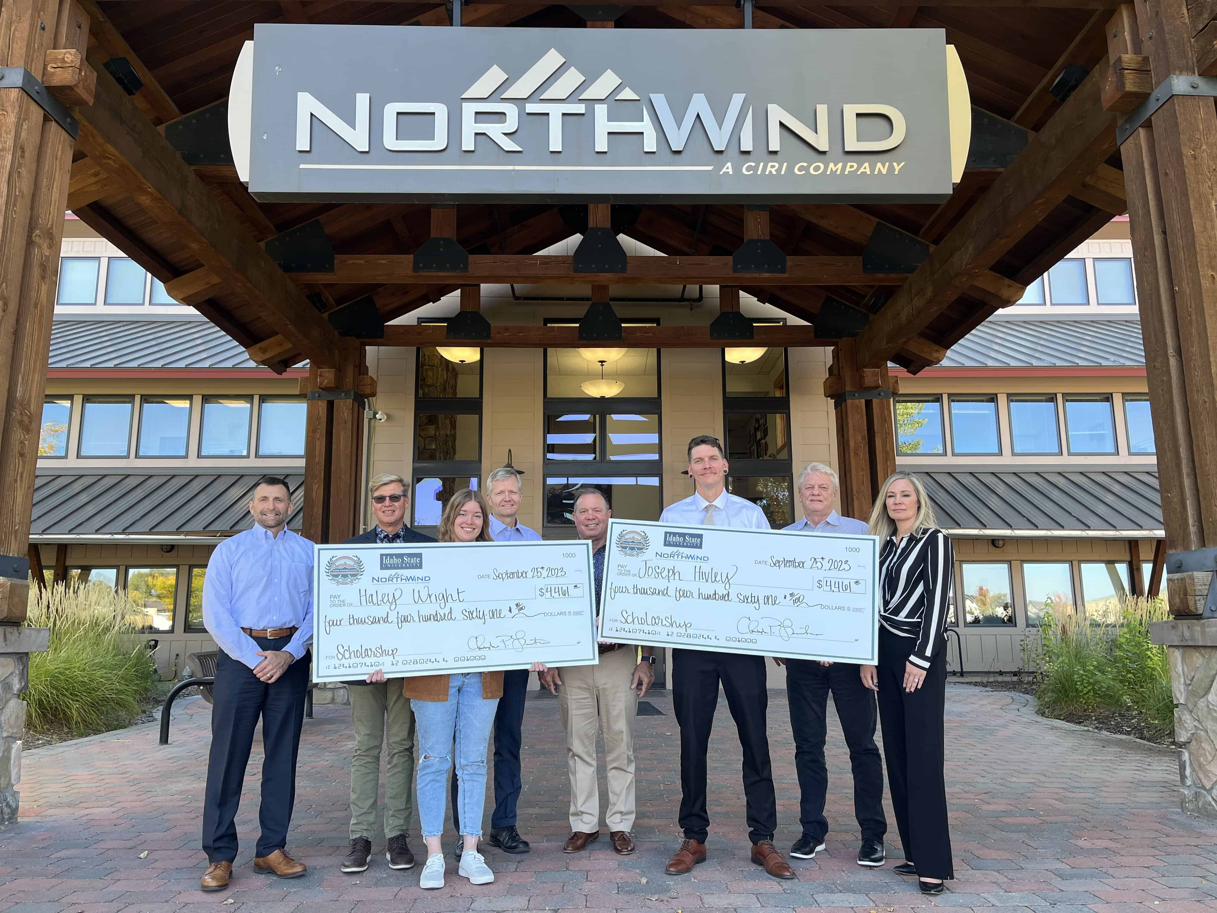 Haley Wright and Joseph Hively, ISU Scholarship recipients receive checks at North Wind’s Corporate office in Idaho Falls