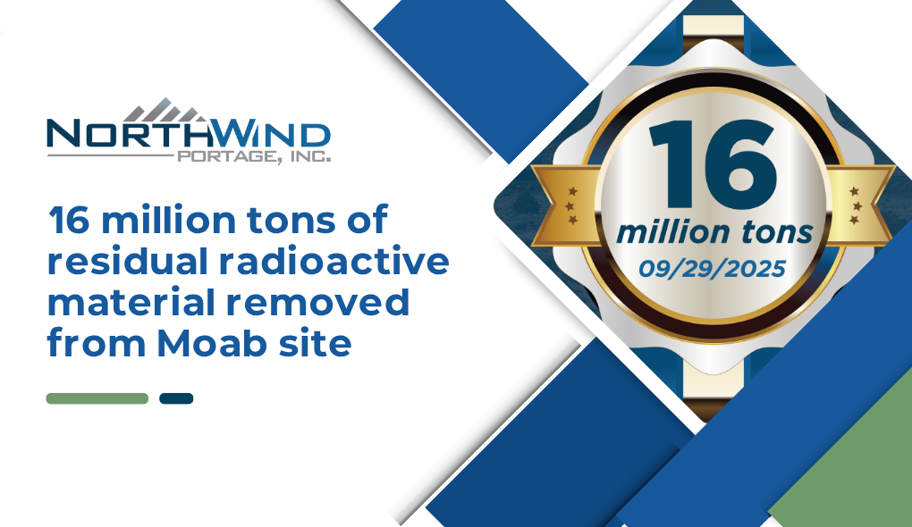As of September 29, North Wind Portage‘s Moab Uranium Mill Tailings Remedial Action (UMTRA) Project has safely removed, shipped, and securely disposed of a cumulative 16 million tons of residual radioactive material from the Moab Site, in Utah, to a nearby disposal facility in Crescent Junction.