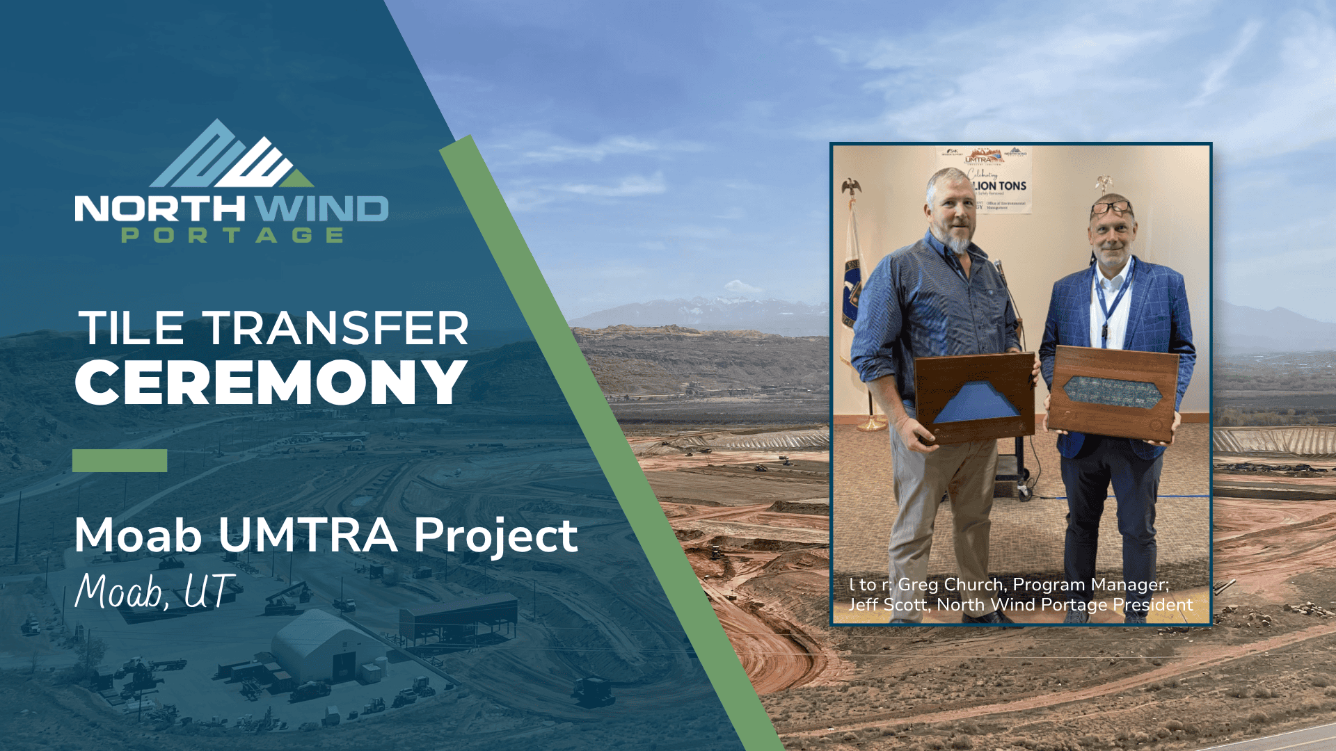 Moab, Utah On Thursday, April 9, 2026, the North Wind Portage Moab UMTRA Project celebrated its milestone of permanently removing 16 million tons of residual radioactive material from the Moab site. Members of the project team, senior Department of Energy (DOE) officials, other project stakeholders, and the local community attended the ceremony. The ceremony culminated in the moving of the tile. This marks the 16 millionth ton, moving from a plaque representing the Moab Tailings pile to one representing the secure repository at Crescent Junction – a tradition that has become the cornerstone of these events. This celebration featured remarks…
