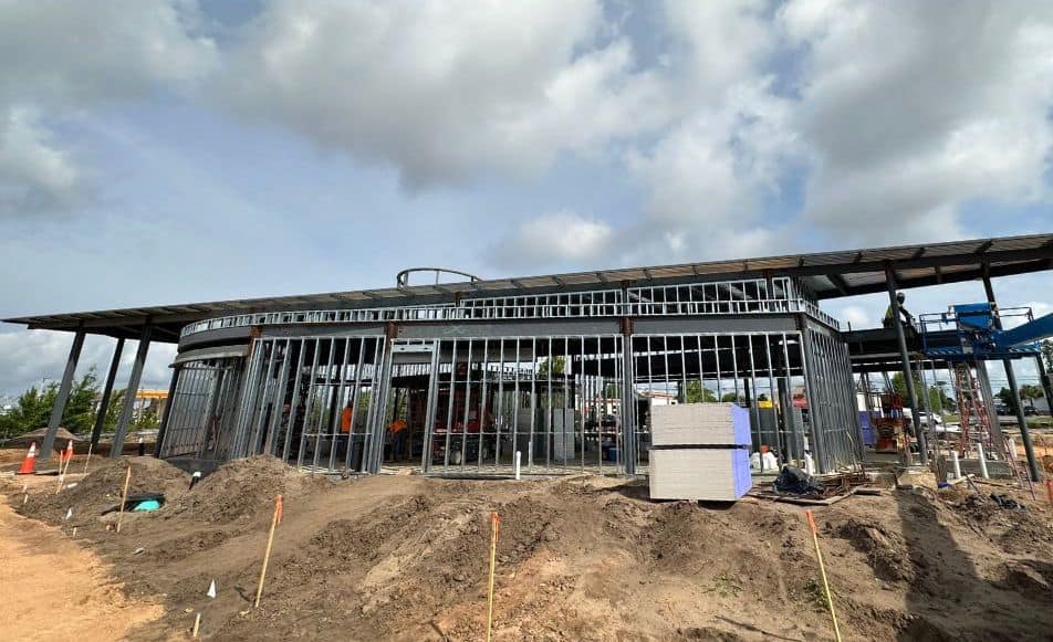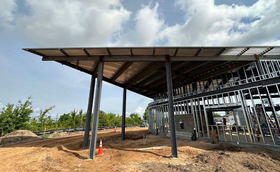 The Panama City Branch of Progress Bank is a 5,000 SF, one-story, steel-framed facility. The bank was designed to have a dramatic roofline that resembles a wing that sits above the bank and the teller lines. The building has been designed to resist hurricane force winds in accordance with the Florida Building Code. Check out the progress on Progress!